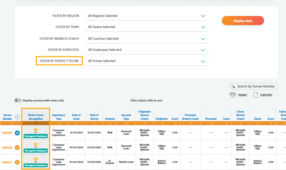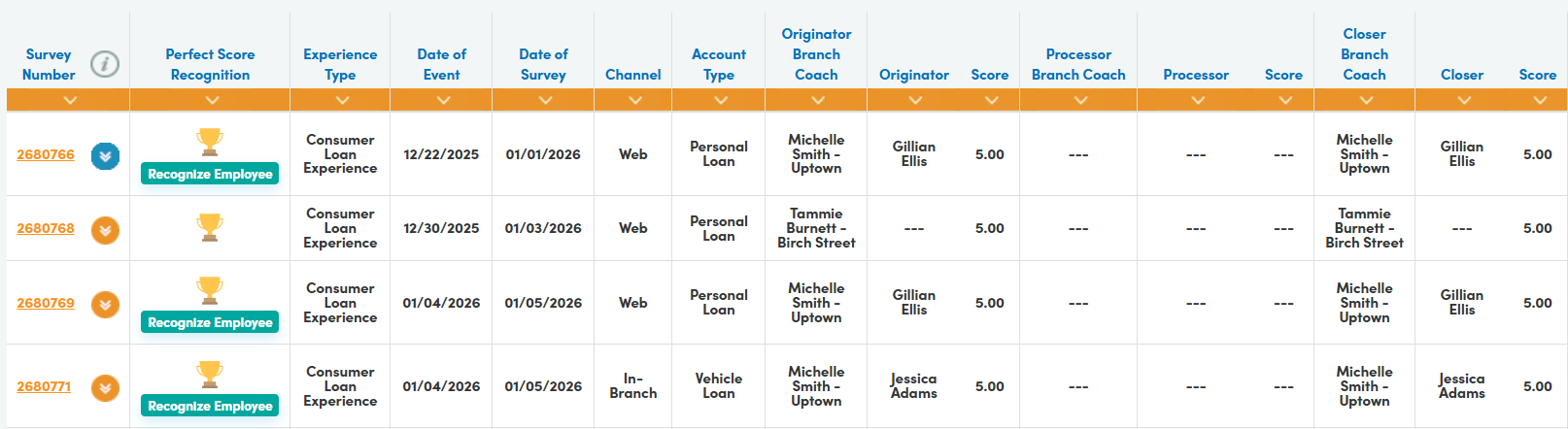 - Easily identify perfect-score surveys using a dedicated recognition column
